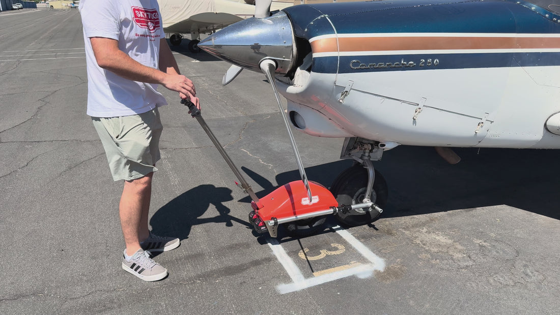 Fold the heavy-duty latch, retract the telescoping attachment points and your tug is ready to fly with you! Weighing in at only 35lbs, SkyTug Pro is just a rounding error on your weight and balance sheet.